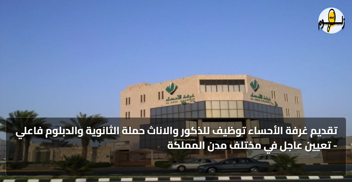 تقديم غرفة الأحساء توظيف للذكور والاناث حملة الثانوية والدبلوم فاعلي – تعيين عاجل في مختلف مدن المملكة