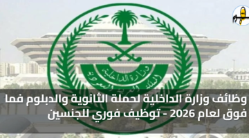 اوامر توظيف وزارة الداخلية لحملة الثانوية والدبلوم فما فوق لعام 2026 – توظيف فوري للجنسينآخر تحديثفيوظائف السعودية اليوم