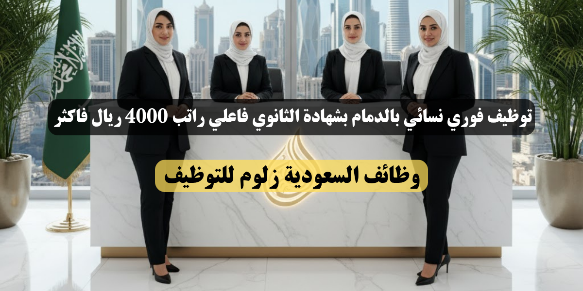 توظيف فوري نسائي بالدمام براتب يبدا من 4000 ريال في تخصصات مختلفة