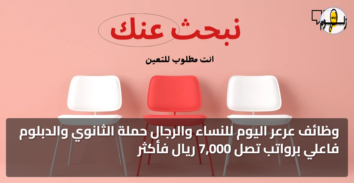 وظائف عرعر اليوم للنساء والرجال حملة الثانوي والدبلوم فاعلي برواتب تصل 7,000 ريال فأكثر