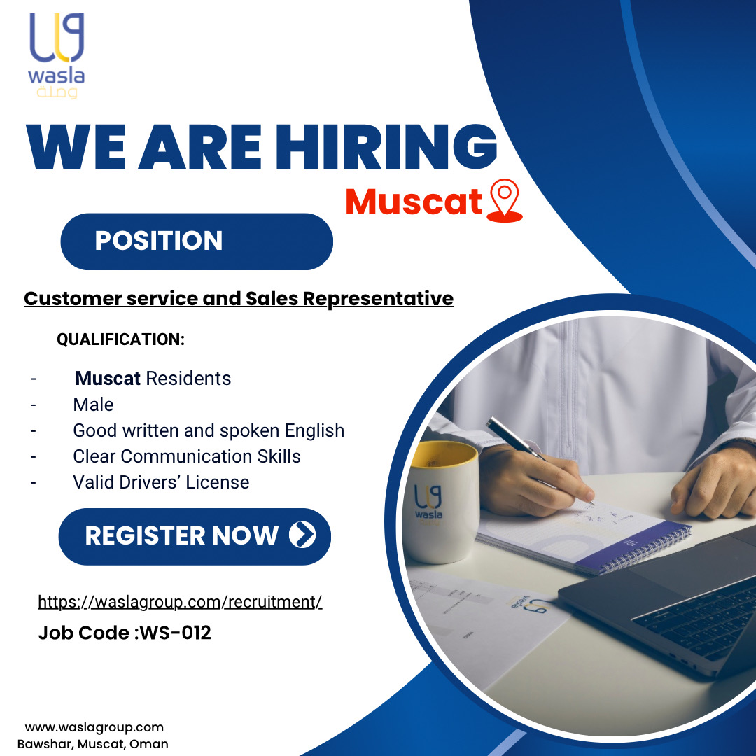 نقدم لكم عبر زلوم للتوظيف وظائف في عمان بدون شهادة في مجموعة وصلة بمسقط في مجالات المبيعات وخدمة العملاء للعمل وفق المسميات والتفاصيل الاتية: